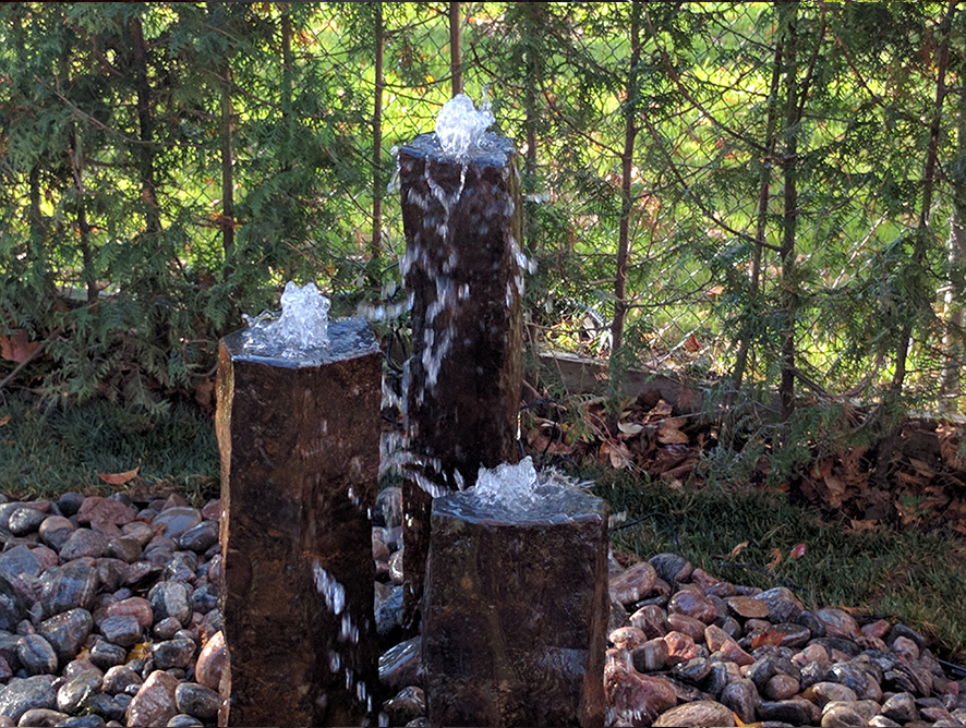 Zhu family recently moved to a new place and wanted to settle down in a cozy indoor and outdoor home. There was an existing deck at the backyard. The purposes of the transforming are to create a focal point for the large backyard, to set a vegetable garden and to add another gathering place. A nice shaded area under two existing trees is selected for a new patio. A set of 3 besalt fountain with river rock is chosen as the focal point. The fountain is set on the way to the new patio and it could be viewed from all sides. The walk path is set aside of the property line to embrace a large piece of lawn in the middle of the backyard. The vegetable garden is set on a slope facing afternoon sun lights.